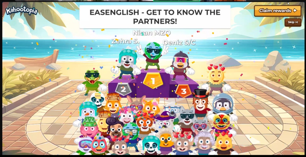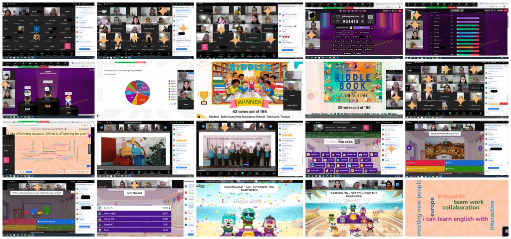 9 Mayıs eTwinning Günü kutlaması kapsamında EasEnglish eTwinning projemizin öğrenci buluşmasını gerçekleştirdik. Toplantımız boyunca Bosna-Hersek, Romanya, Polonya ve Türkiye'den dahil olan tüm kardeş okul öğrencilerimiz Kelime bulutu anketi ile eTwinning nedir? sorusuna güzel cevaplar verdiler. Quizizz ve Kahoot yarışmalarında Kardeş okul ülkelerimiz hakkında sorulan genel kültür sorularına cevap verdiler. Polonya tarafından koordine edilen yarışmada okulumuz 5-H sınıfı öğrencisi Nisan Ş. birinci olarak okulumuzu çok başarılı bir şekilde temsil etti. Öğrencimizle gurur duyuyor ve onu tebrik ediyoruz.