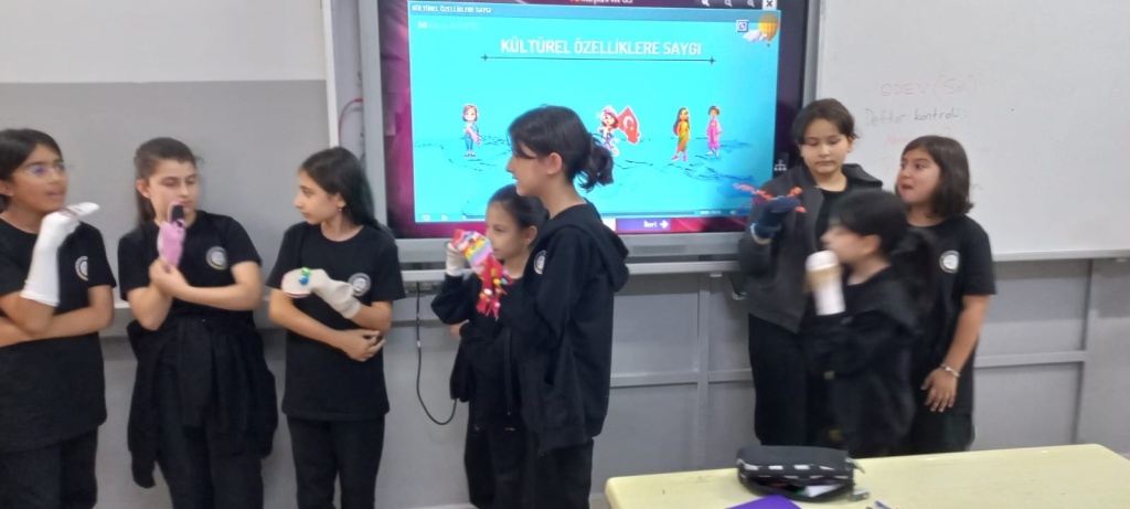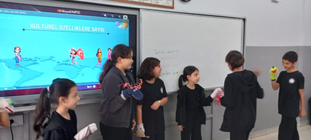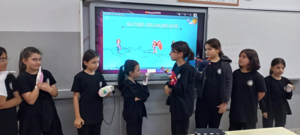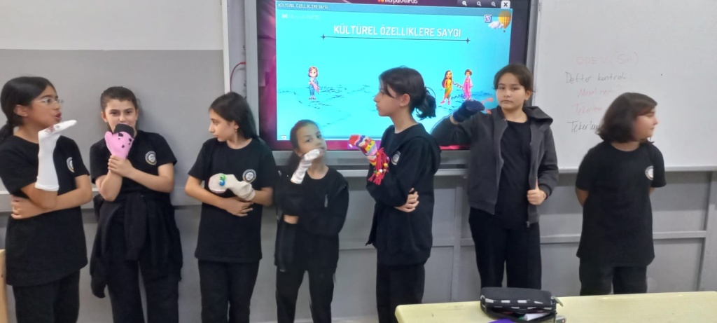 Bu etkinlikte öğrencilerimiz, farklı kültürlere saygı duymanın birlikte yaşamaya katkısını anlatan senaryolar yazıp kendi yaptıkları el kuklalarıyla canlandırdılar.