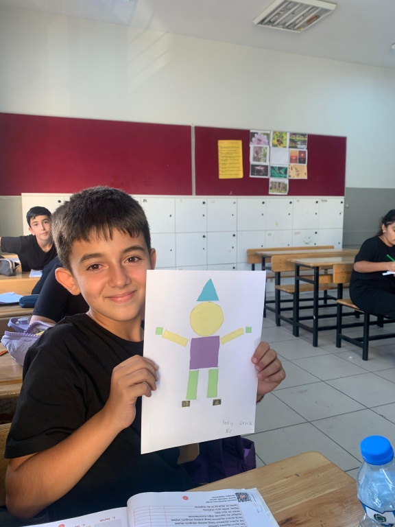 Etkinlik sırasında öğrenciler öğrendikleri şekiller ile yaratıcılık yönlerini geliştirdiler ve eğlenerek pekiştirdiler.